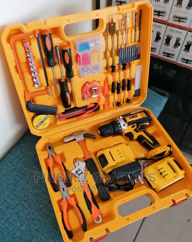 This is a multipurpose quality toolskit designed for both industrial and household duty. The drill would penetrate any concrete, hard wood, steel or aluminium material. its handy, resist corrosion, light and mobile, i.e you can take it with you to anywhere at anytime